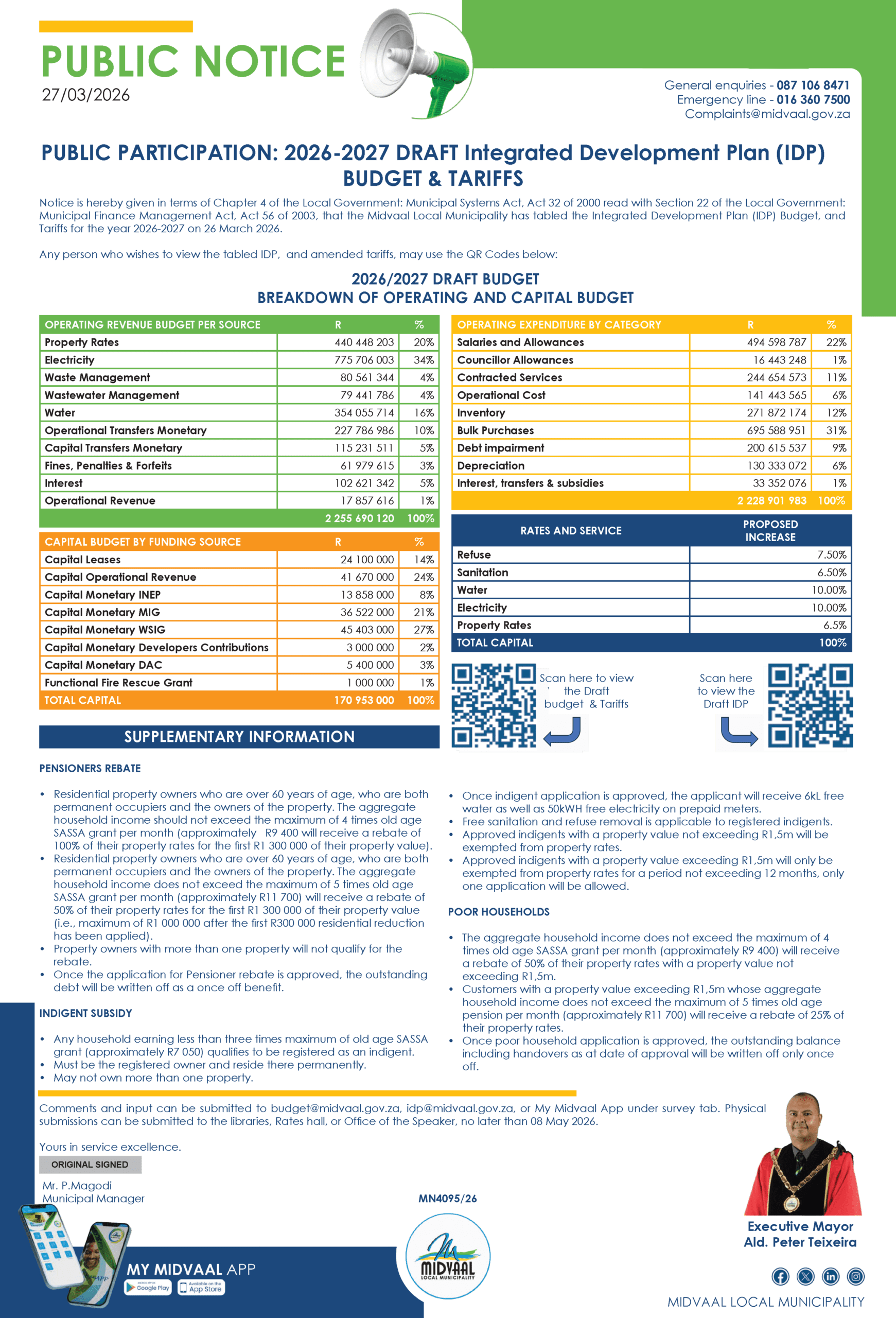 Midvaal Local Municipality has increased its Mayoral Student Financial Aid Programme budget to more than R1.1 million for the 2026