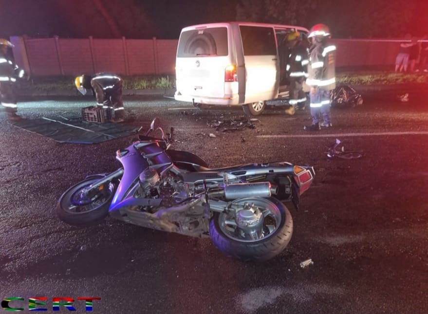 One killed, one seriously injured in a motorcycle and minibus collision in Meyerton