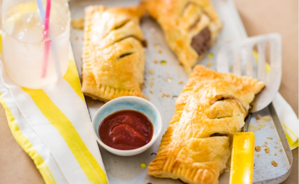 Place a piece of sausage on one end of each rectangle, fold pastry over and press sides closed with a fork.