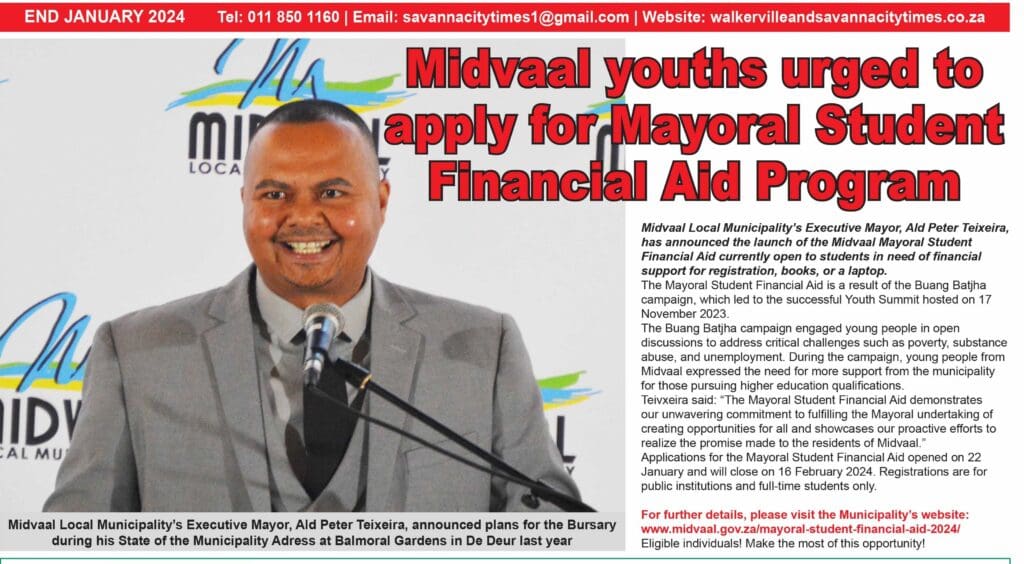 To secure your space, get in touch with us on 010 230 0038 or 011 850 1160. Email: savannacitytimes1@gmail.com