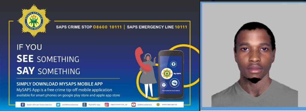 If you have any information that can help the police to identify and locate this suspect, please contact Investigating Officer, Constable Brummer of Vereeniging FCS, on 073 079 1467 or 016 450 2566. You can also report anonymously via the MySAPS App or by calling the Crime Stop number 08600 10111.
