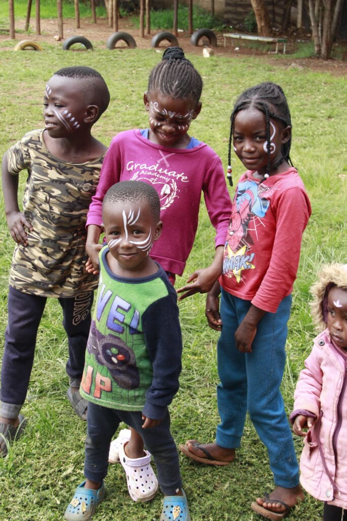 After the gifts were distributed, the fun continued with creative face painting sessions, where Tammi, Shoneez, and Amanda showcased their artistic talents, leaving the children with colorful designs. Meanwhile, Lucky and the other men got the boys involved in a lively game of soccer, full of running, laughing, and the occasional tumble. It was clear that everyone was having a blast.