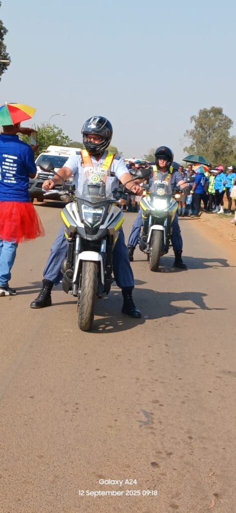 Among the speakers were Meyerton Station Commander Senzangakona Christopher Mohale, Lt/Col De Winnaar, and Ward 8 Councillor Ndebele.The walk began in silence, led by the Meyerton SAPS bike squad and Midvaal Traffic, with marshals assisting in traffic control and guiding learners along the route.